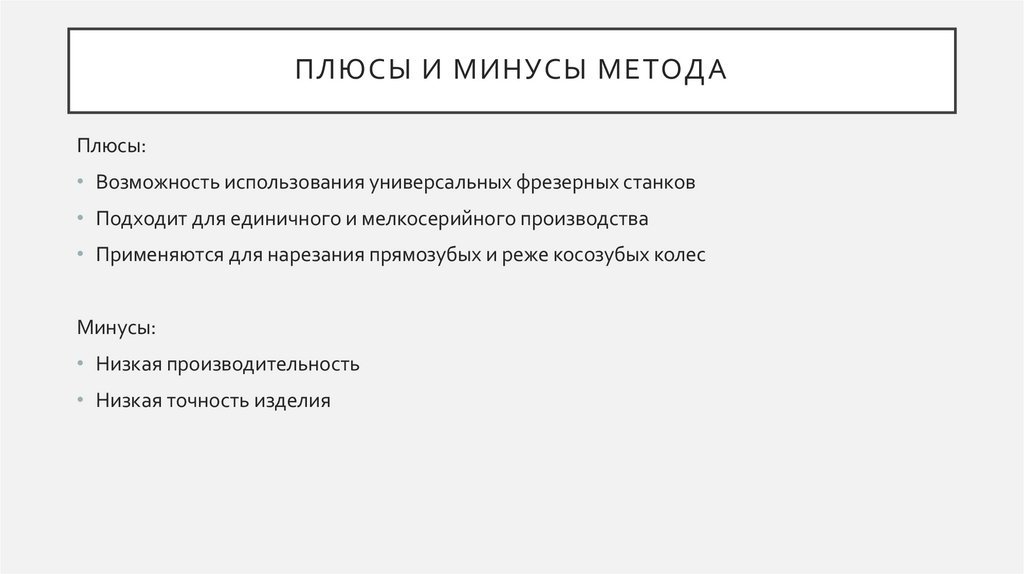 ПЛЮСЫ И МИНУСЫ МЕТОДАПлюсы: