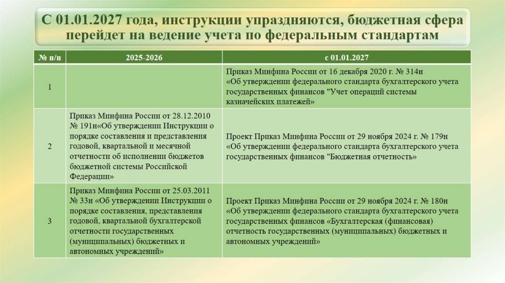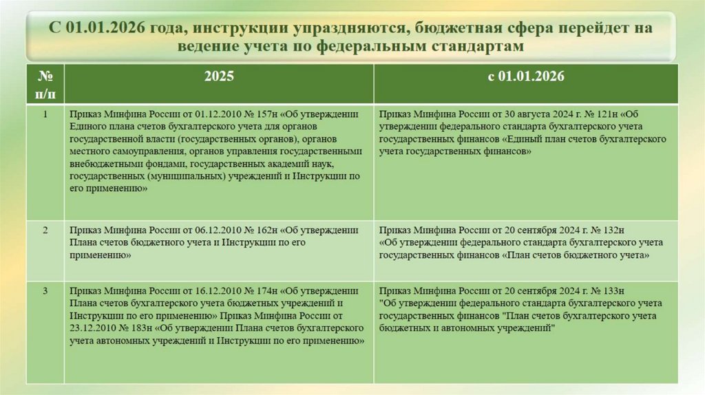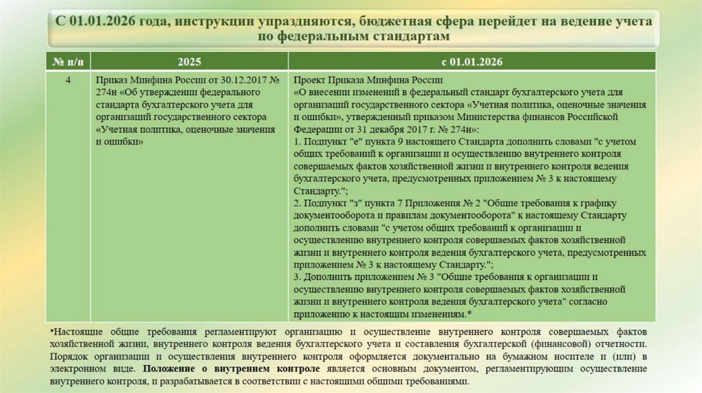Обзор изменений законодательства, федеральные стандарты бухгалтерского учета