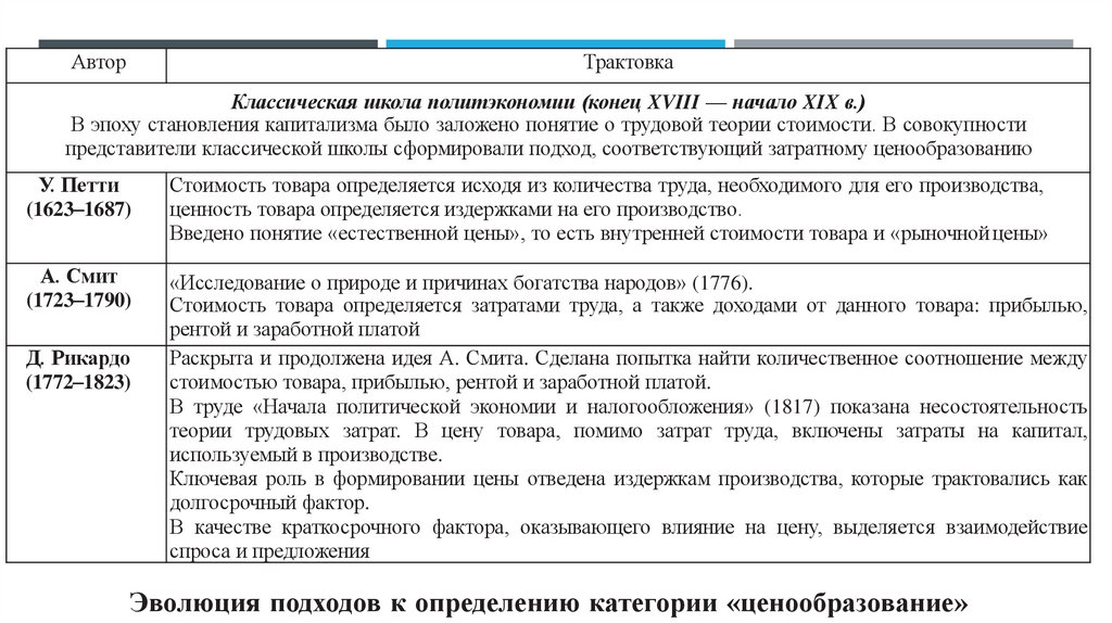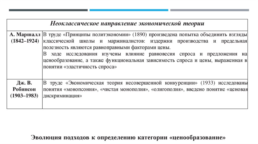 1. Тема 2 Эволюция теории ценообразования