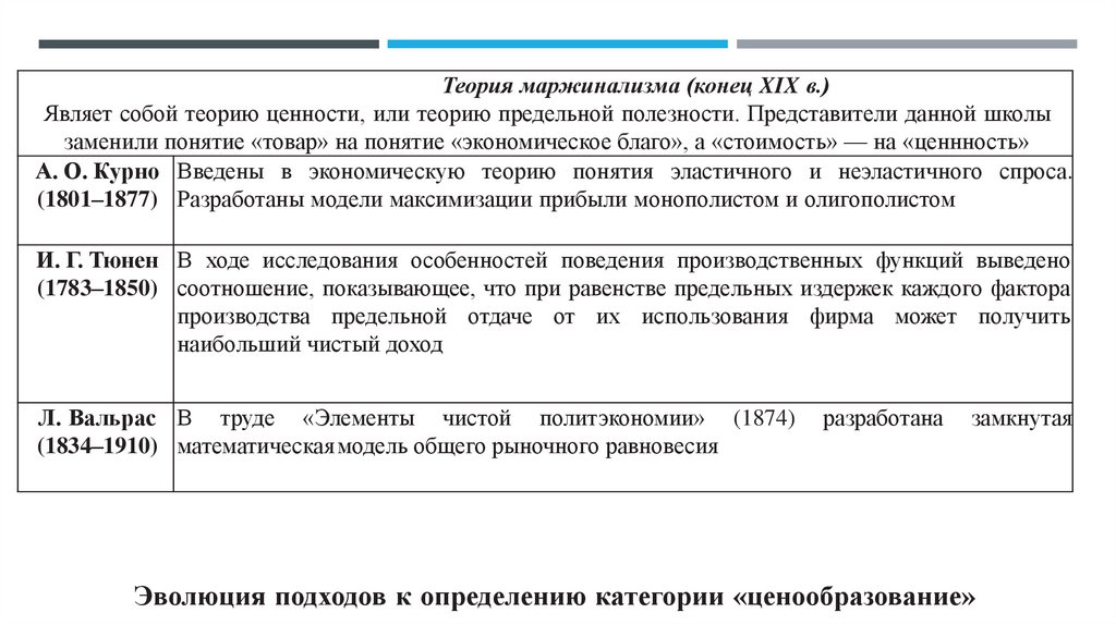 ТЕМА 2ЭВОЛЮЦИЯ ТЕОРИИ ЦЕНООБРАЗОВАНИЯ