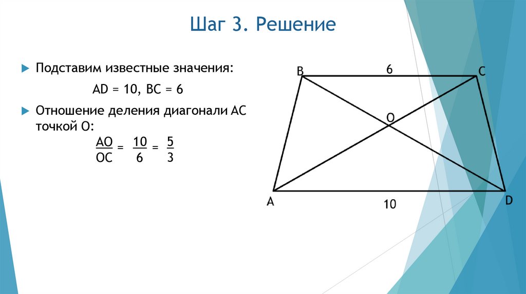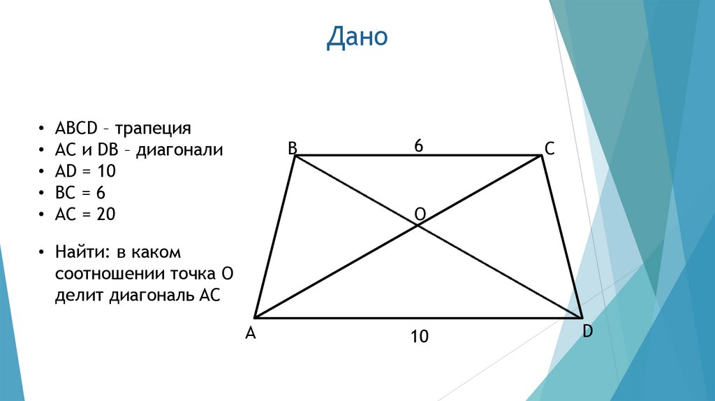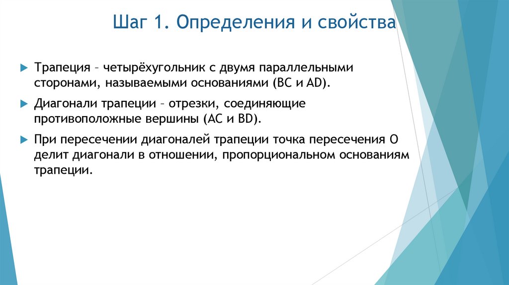 12. Шаг 2. Теорема о делении диагоналей трапеции
