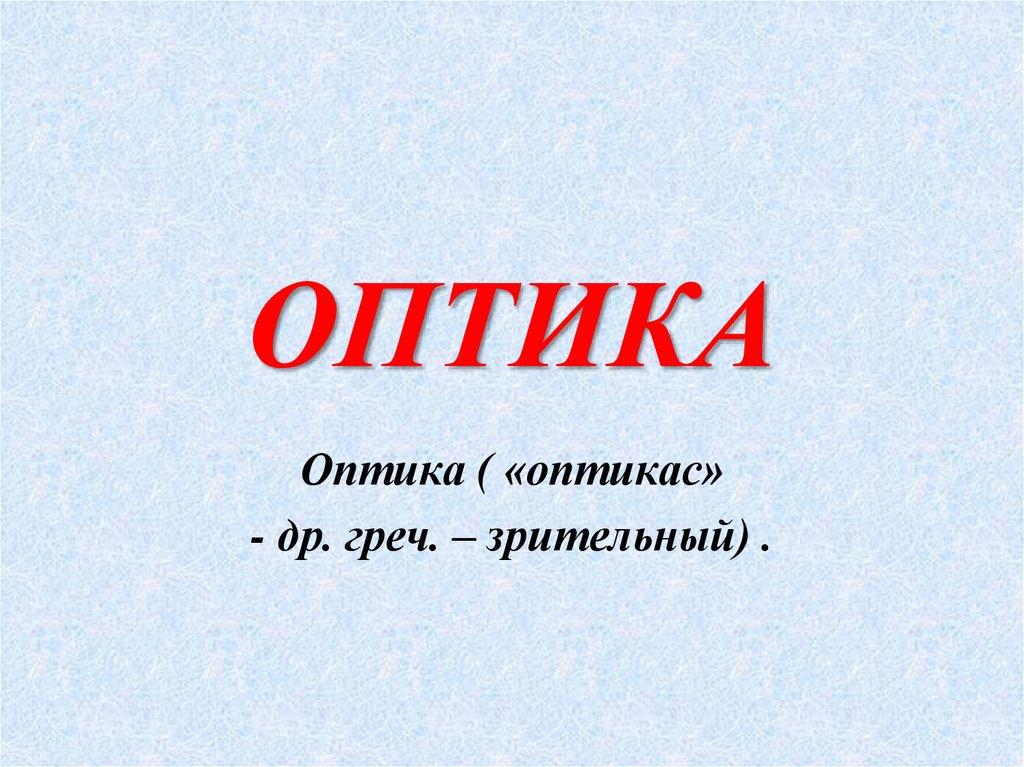 Оптика ( «оптикас»- др. греч. – зрительный) .
