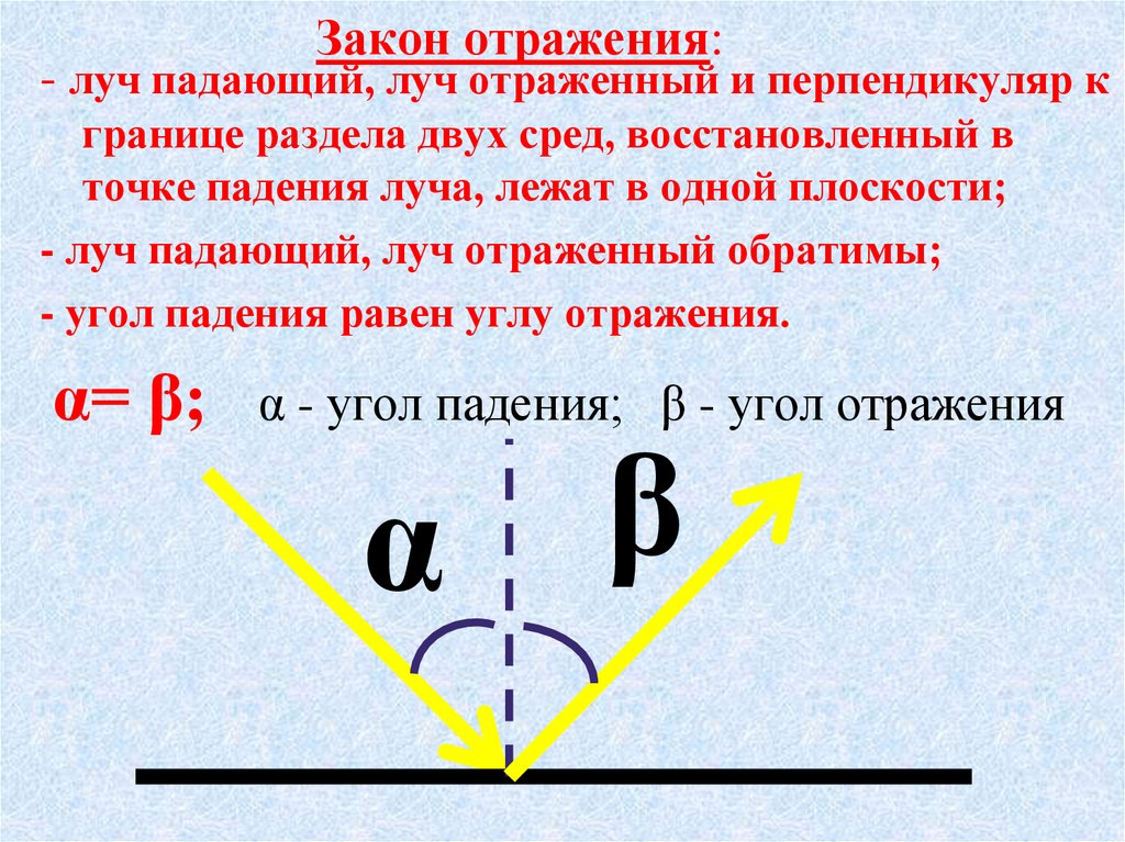 α - угол падения; β - угол отражения