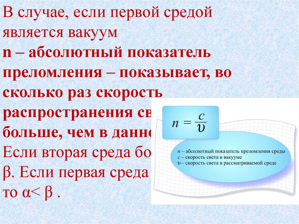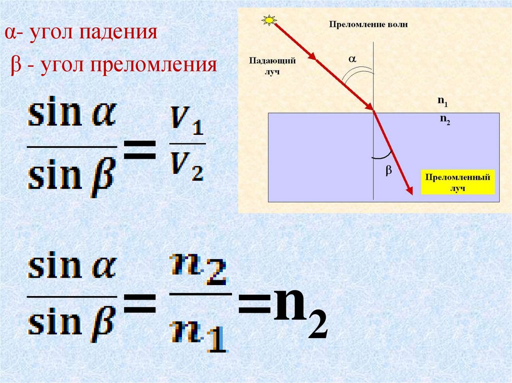 α- угол паденияβ - угол преломления