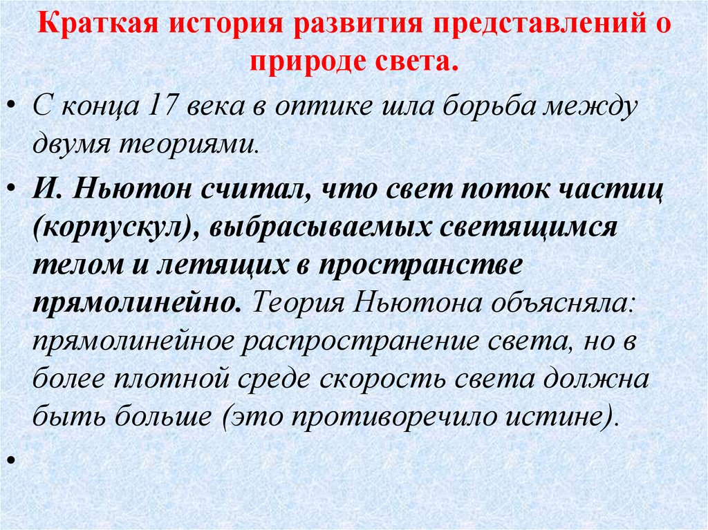 3. Краткая история развития представлений о природе света.