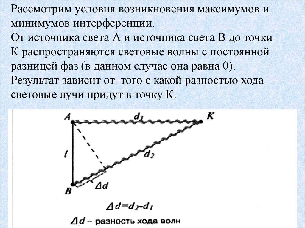 Рассмотрим условия возникновения максимумов иминимумов интерференции.