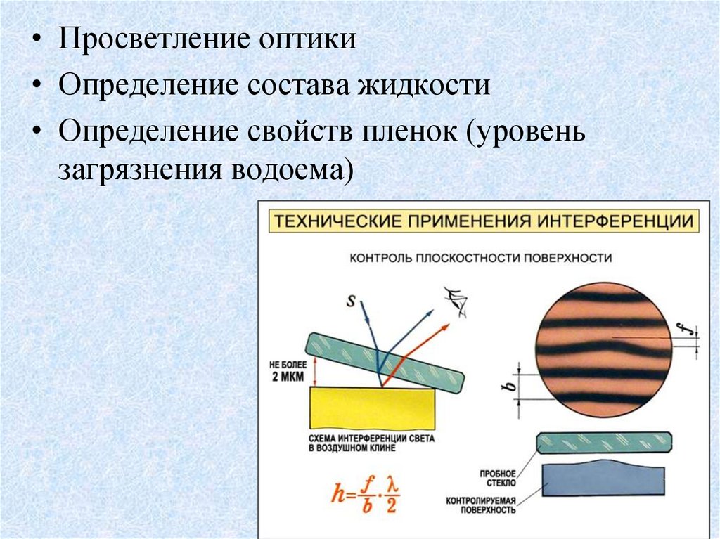 • Просветление оптики• Определение состава жидкости