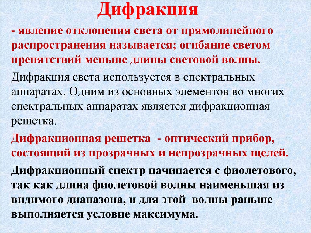 Дифракционная решетка - оптический прибор,