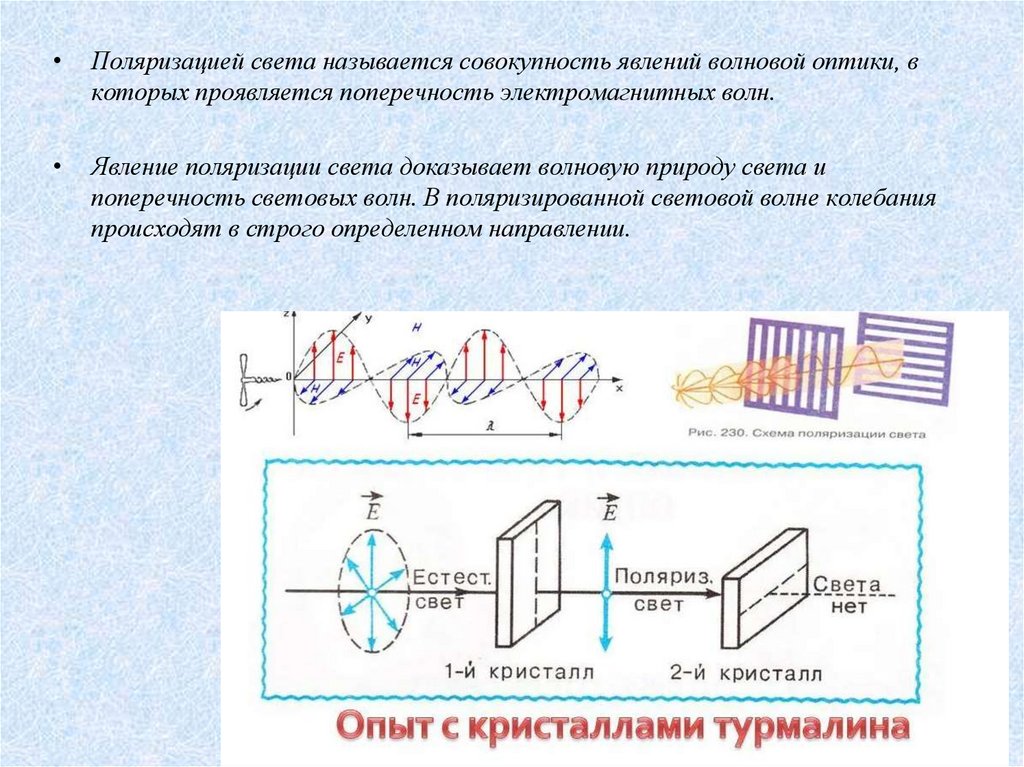 Поляризацией света называется совокупность явлений волновой оптики, в