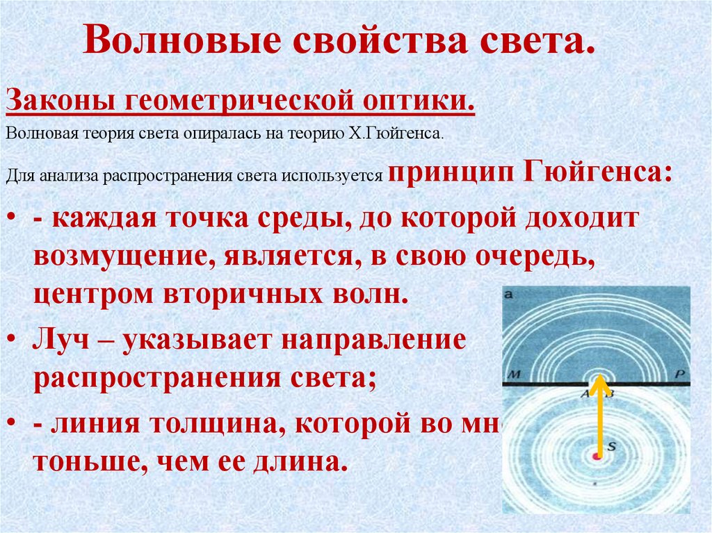 Законы геометрической оптики.Волновая теория света опиралась на теорию Х.Гюйгенса.