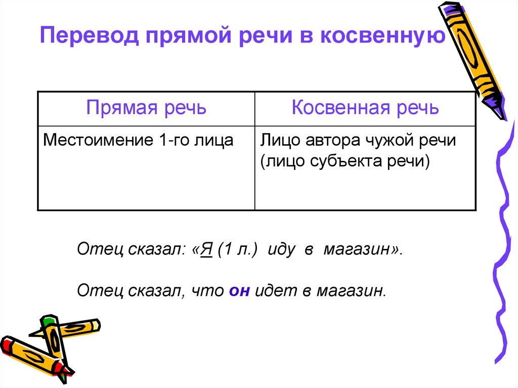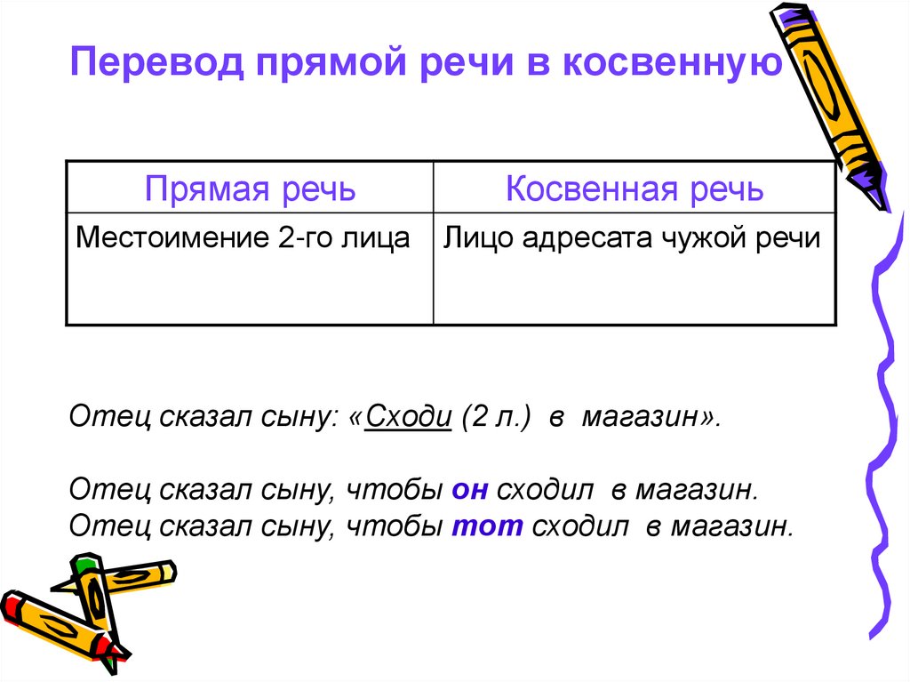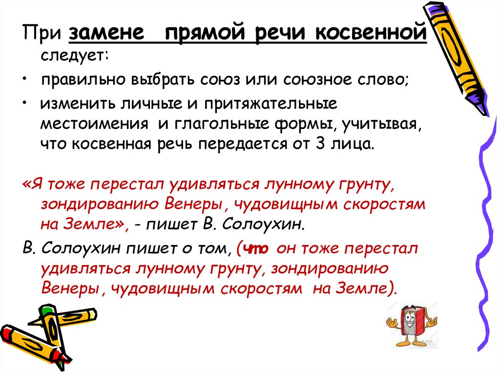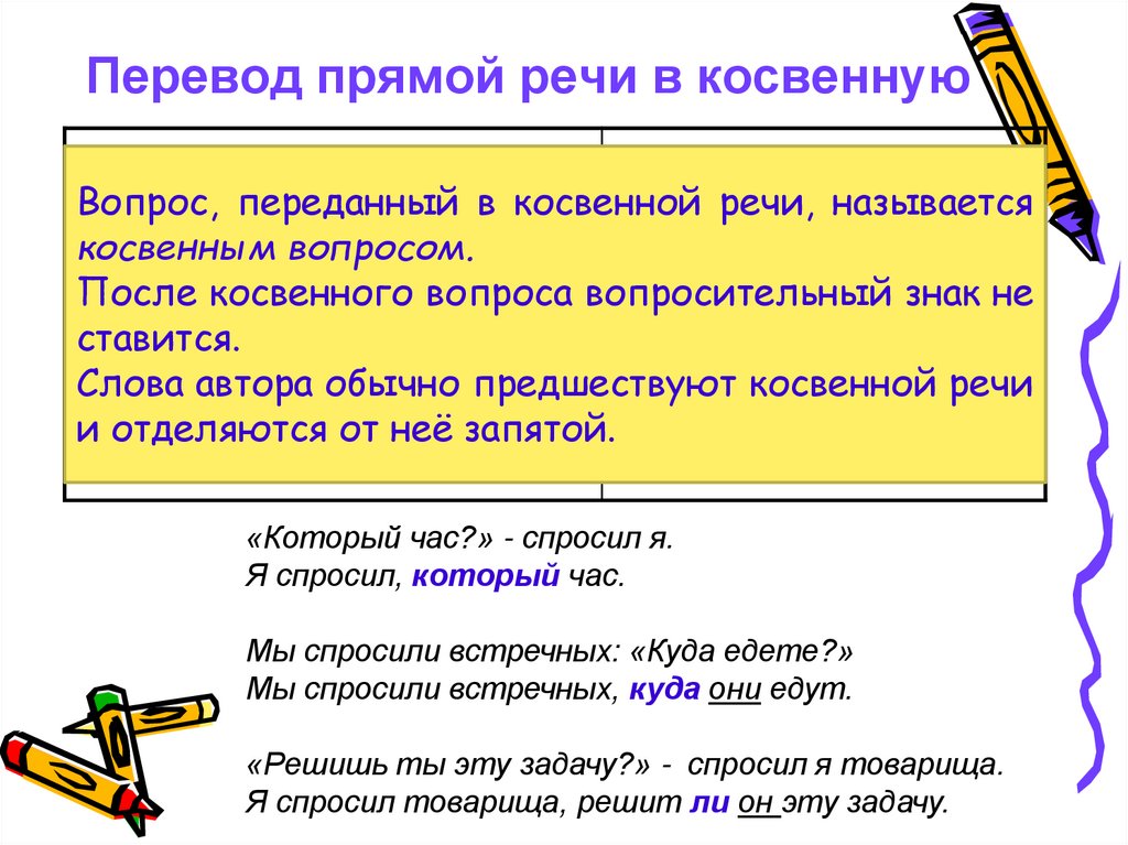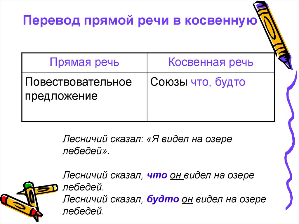 Предложения с косвенной речью. Замена прямой речи косвенной