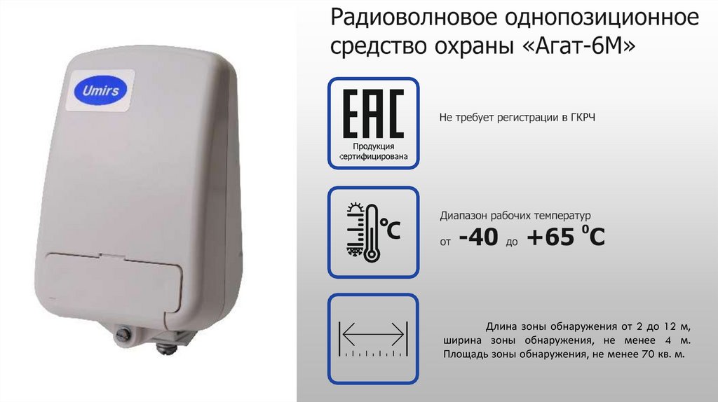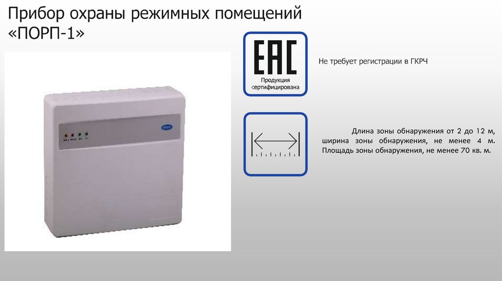 Длина зоны обнаружения от 2 до 12 м,ширина зоны обнаружения, не менее 4 м.