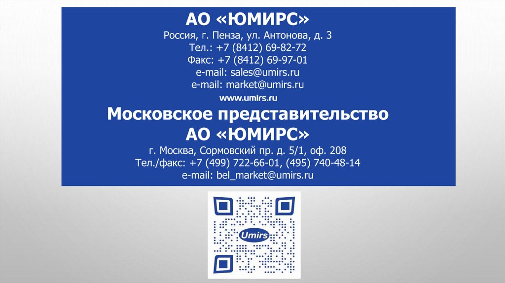 Акционерное общество (АО) «ЮМИРС» является производственным предприятием,имеющим всё необходимое для успешной разработки и серийного производства