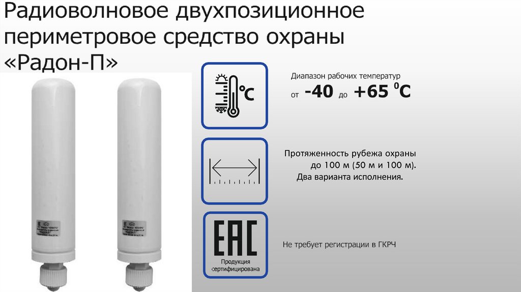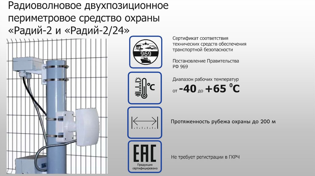 Протяженность рубежа охраны до 200 м7.
