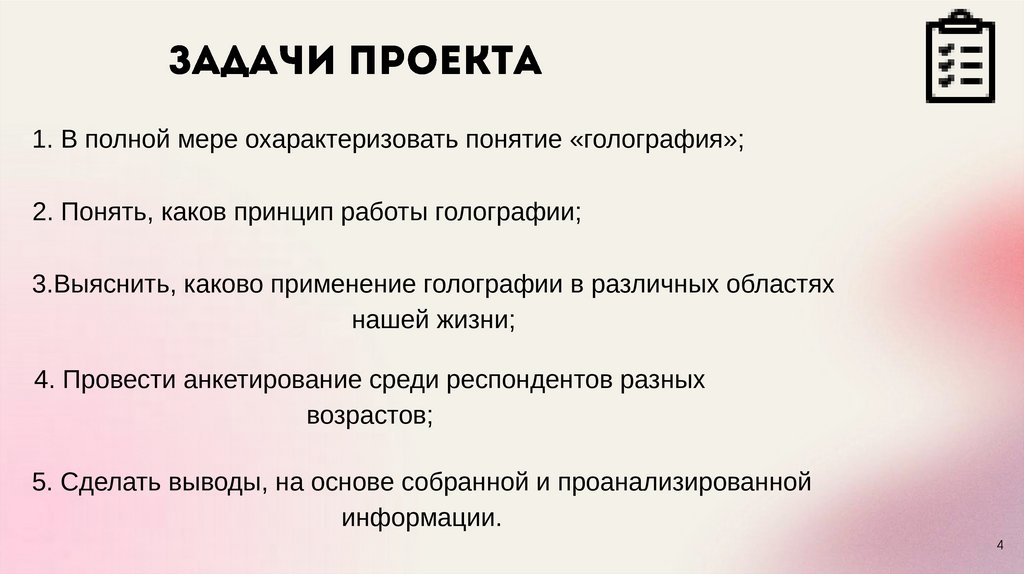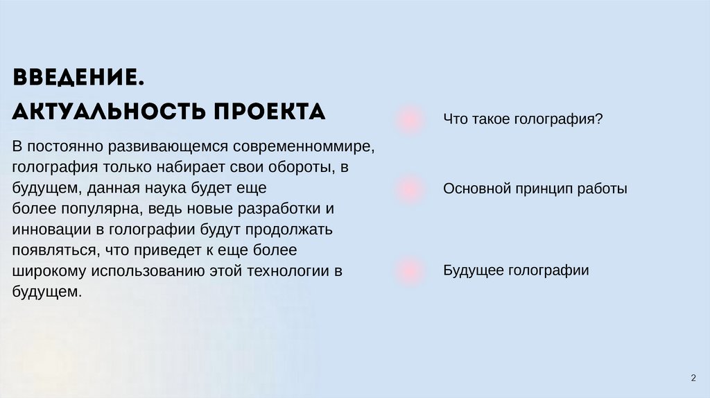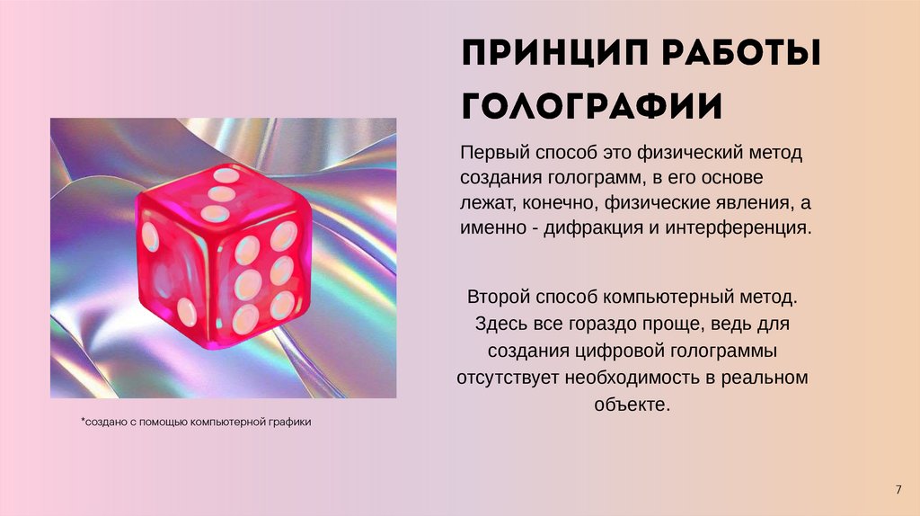 1. В полной мере охарактеризовать понятие «голография»;2. Понять, каков принцип работы голографии;