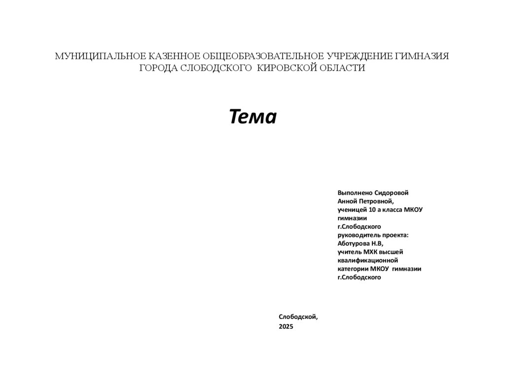 МУНИЦИПАЛЬНОЕ КАЗЕННОЕ ОБЩЕОБРАЗОВАТЕЛЬНОЕ УЧРЕЖДЕНИЕ ГИМНАЗИЯГОРОДА СЛОБОДСКОГО КИРОВСКОЙ ОБЛАСТИ