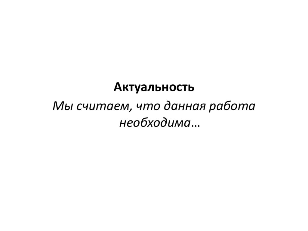 АктуальностьМы считаем, что данная работа