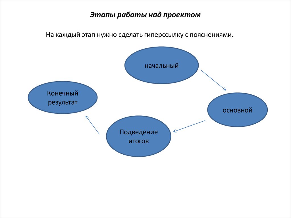 Этапы работы над проектомНа каждый этап нужно сделать гиперссылку с пояснениями.