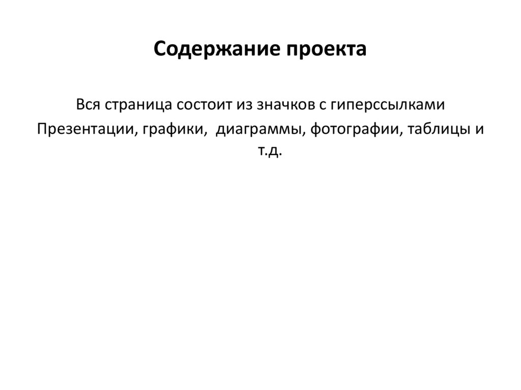 Содержание проектаВся страница состоит из значков с гиперссылками