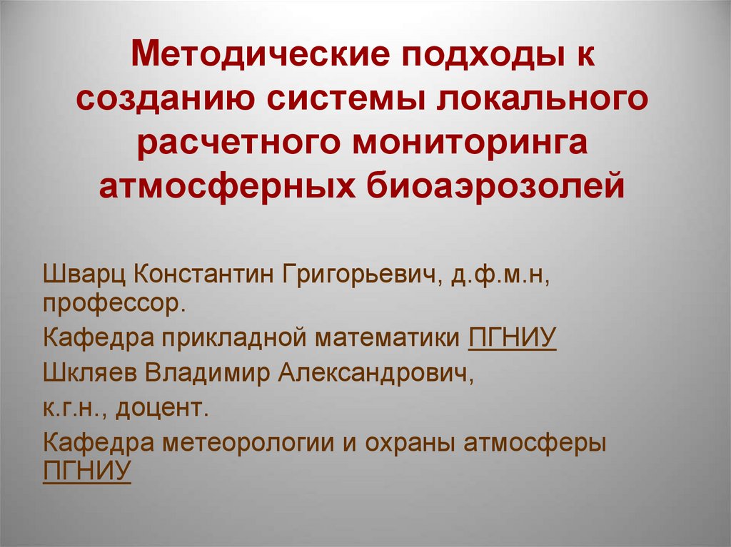 1. Методические подходы к созданию системы локального расчетного мониторинга атмосферных биоаэрозолей