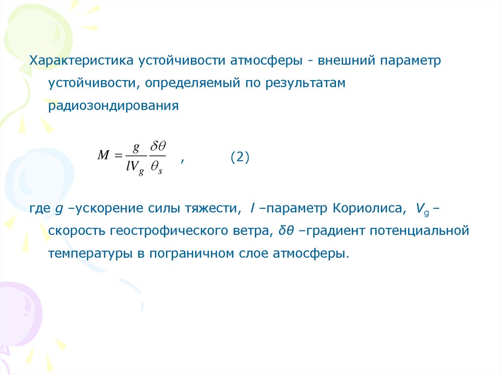 Характеристика устойчивости атмосферы - внешний параметрустойчивости, определяемый по результатам