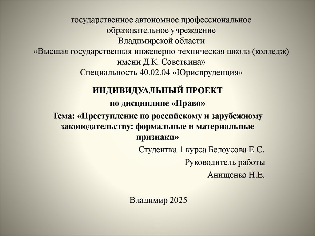 Преступление по российскому и зарубежному законодательству: формальные и материальные признаки