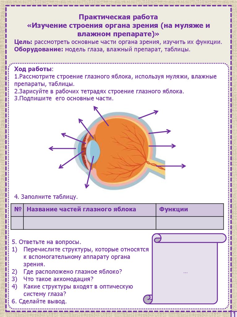 Практическая работа«Изучение строения органа зрения (на муляже и