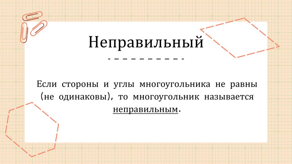 НеправильныйЕсли стороны и углы многоугольника не равны