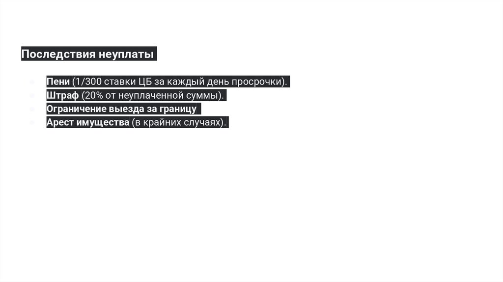 Последствия неуплатыПени (1/300 ставки ЦБ за каждый день просрочки).