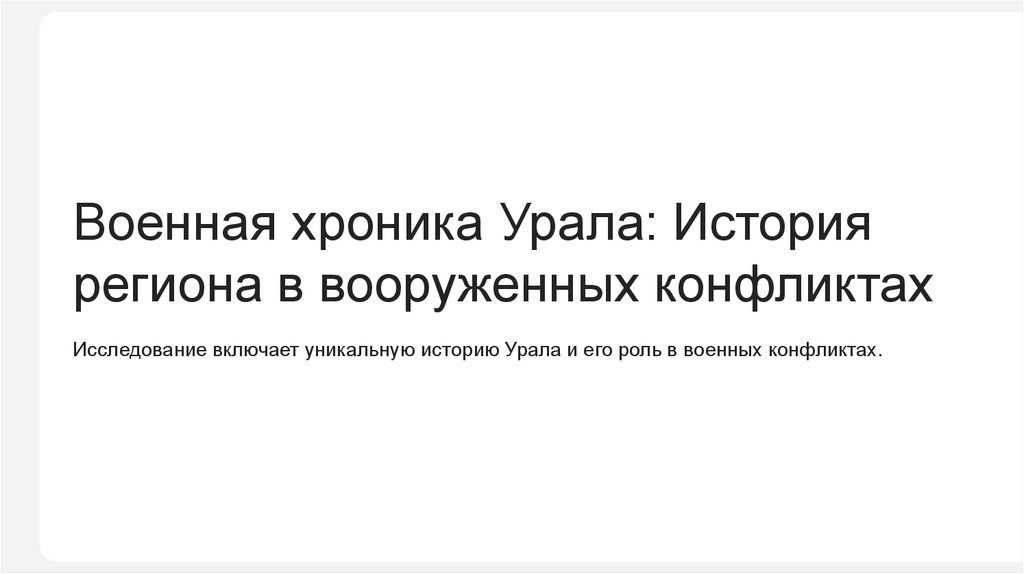 Исследование включает уникальную историю Урала и его роль в военных конфликтах.