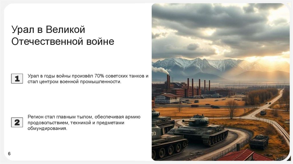 Урал в годы войны произвёл 70% советских танков и