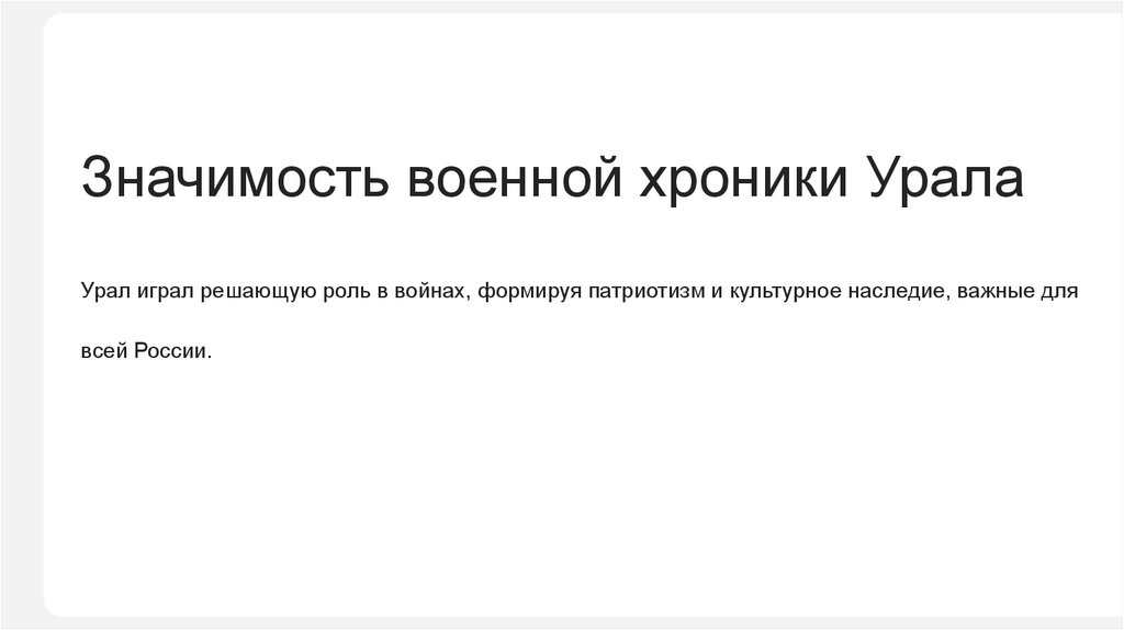 Значимость военной хроники УралаУрал играл решающую роль в войнах, формируя патриотизм и культурное наследие, важные для