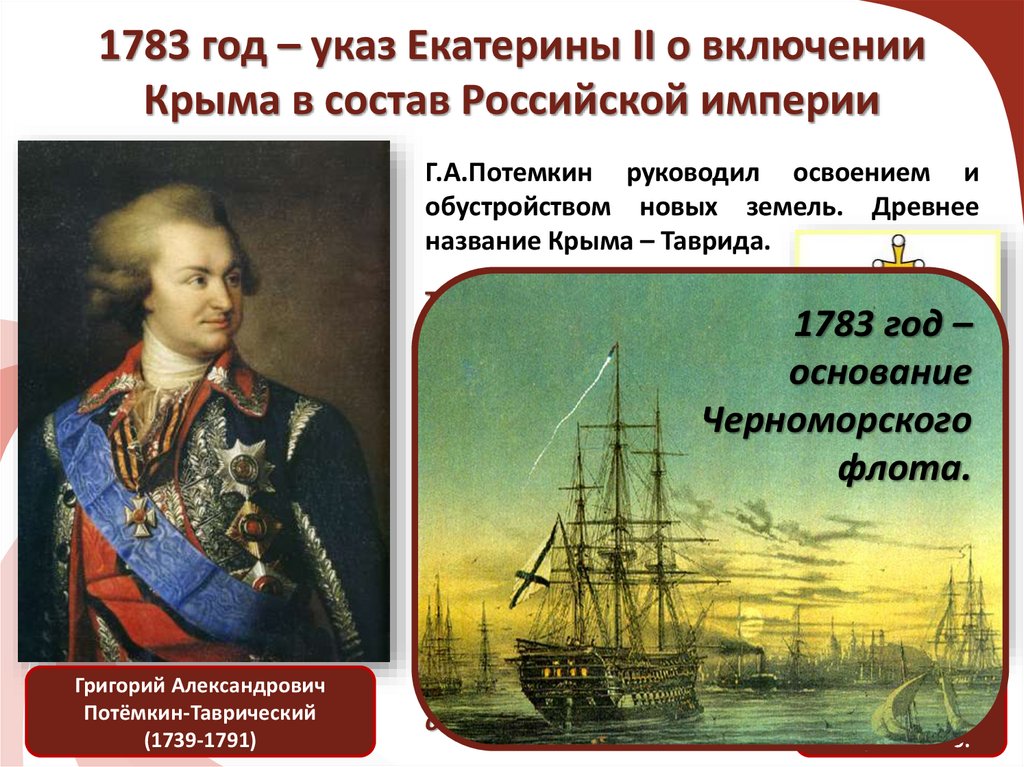 1791 год – Ясский мирподтверждено присоединение Крыма к