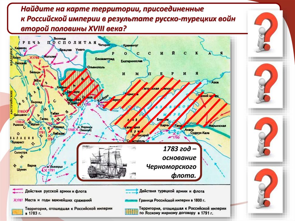 Найдите на карте территории, присоединенныек Российской империи в результате русско-турецких войн