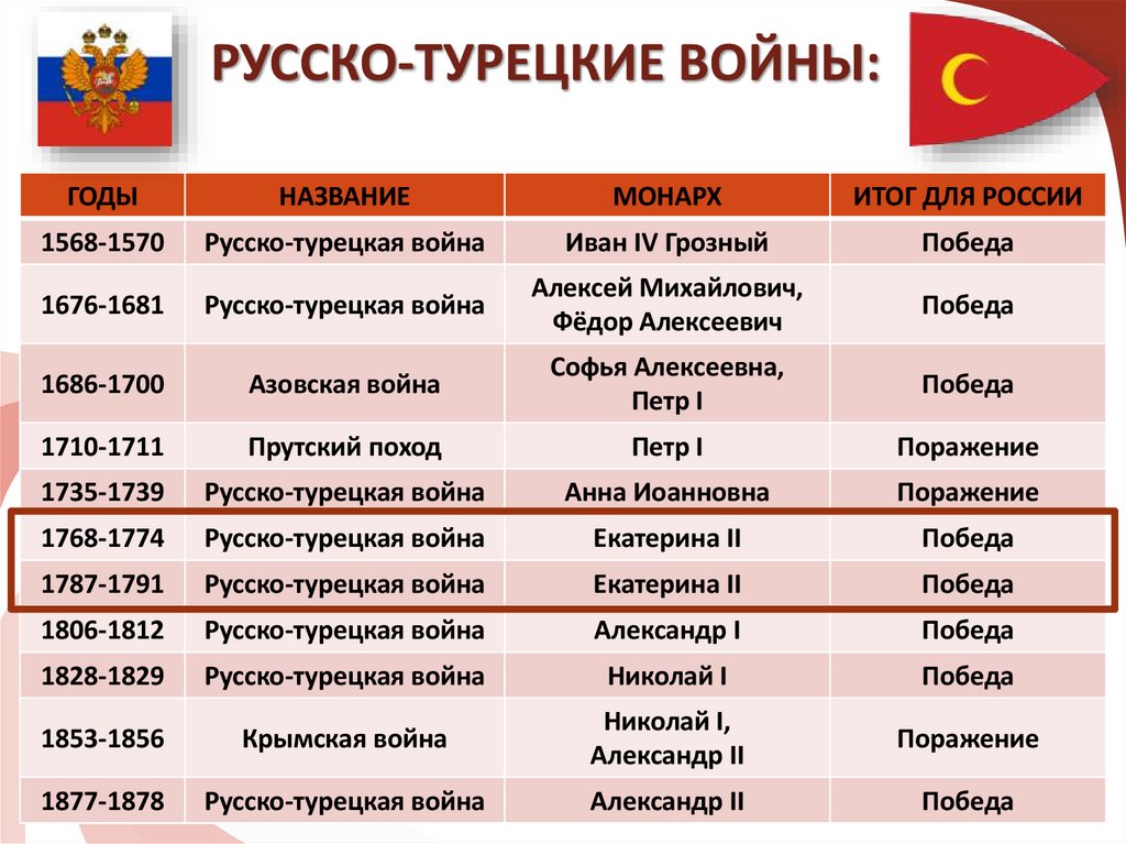 РУССКО-ТУРЕЦКИЕ ВОЙНЫ:ГОДЫ