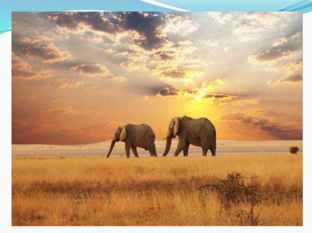 Животный мир здесь представлен слонами ,
