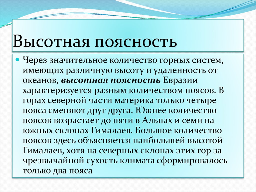 океанов, высотная поясность Евразии