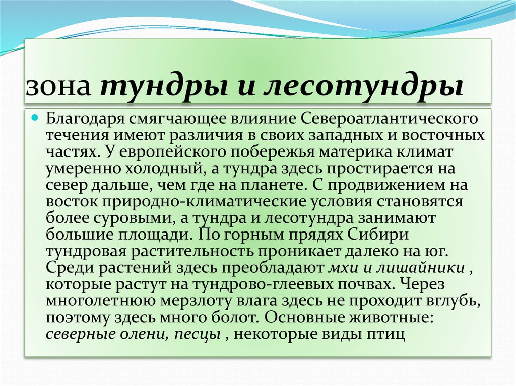 более суровыми, а тундра и лесотундра занимают