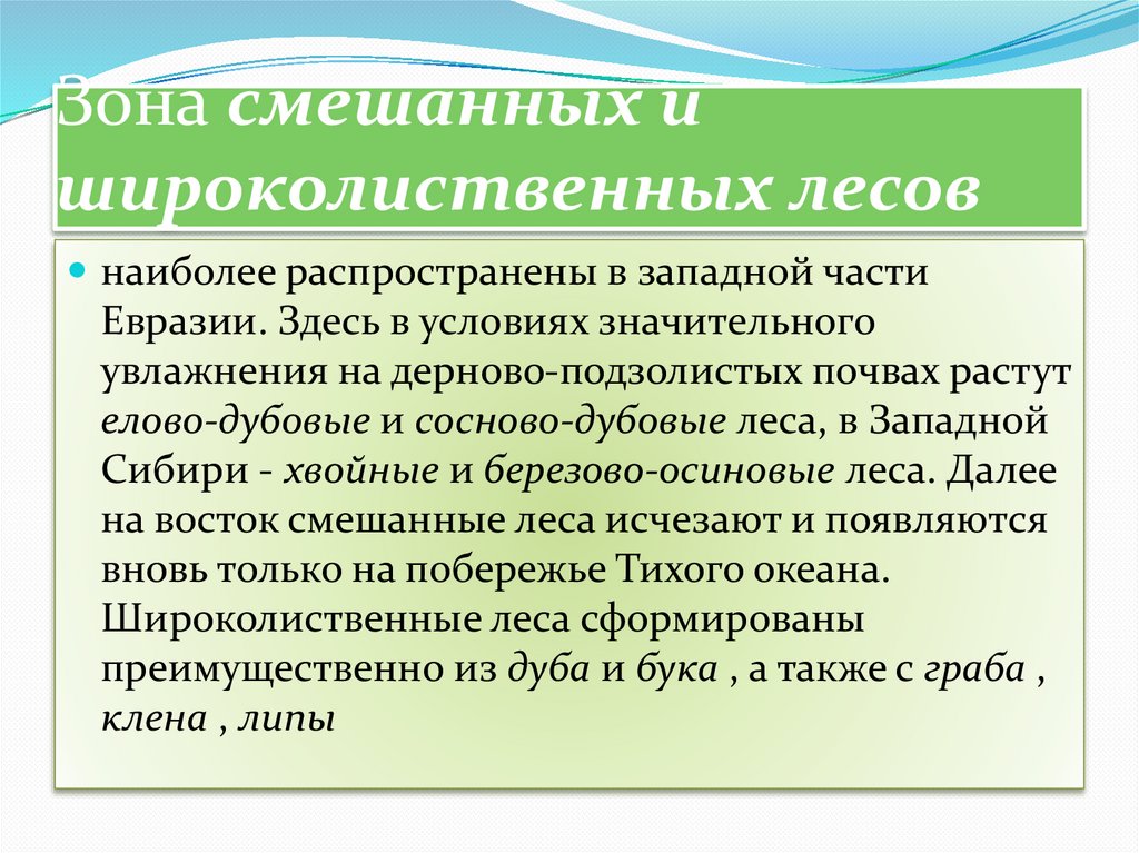 липа, клен ). В восточной части материка при условии