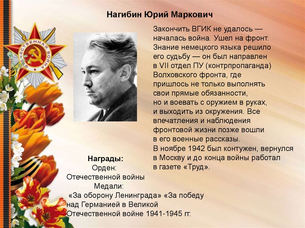 Нагибин Юрий МарковичЗакончить ВГИК не удалось —