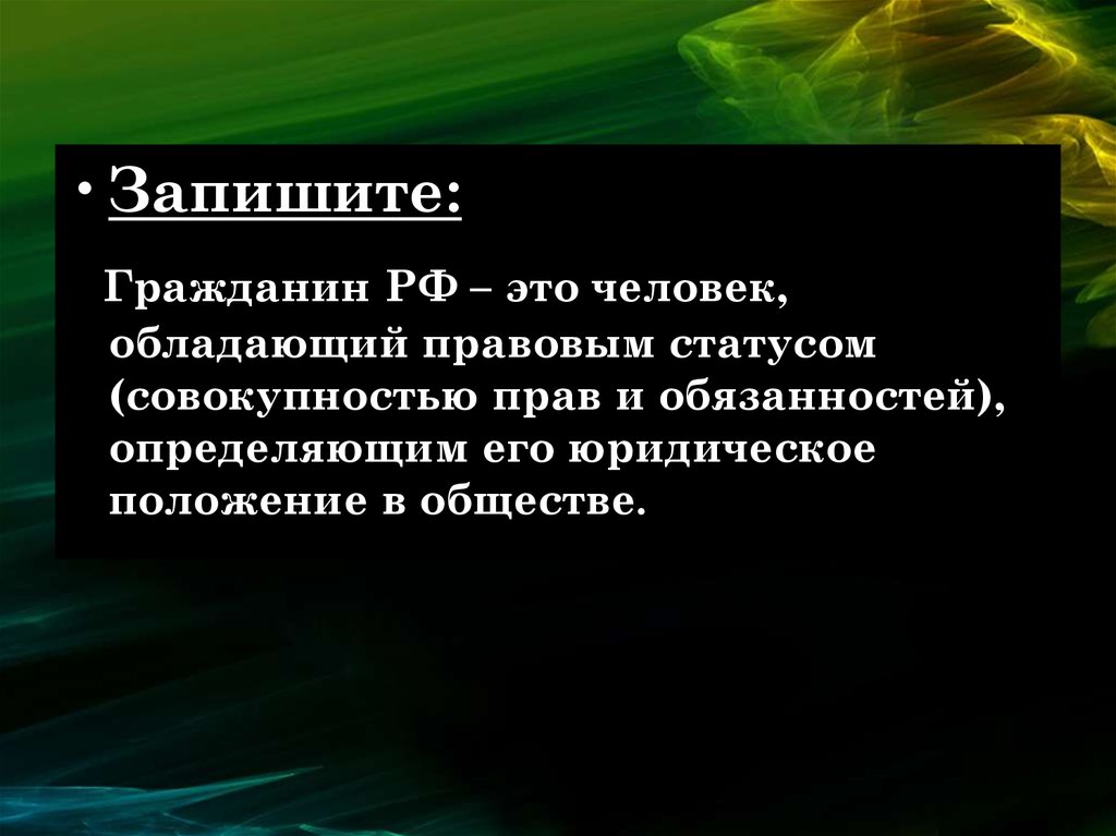•Запишите:Гражданин РФ – это человек,