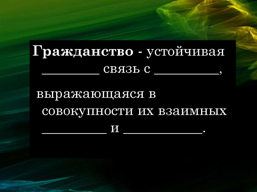 Гражданство - устойчивая________ связь с _________,