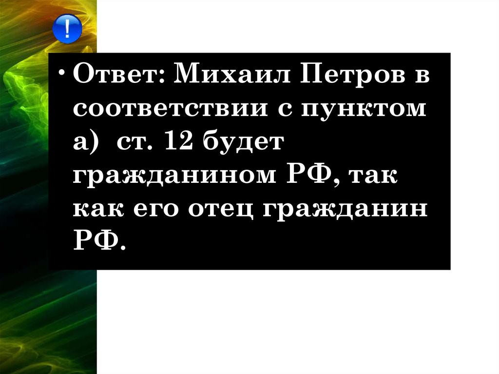 •Ответ: Михаил Петров всоответствии с пунктом