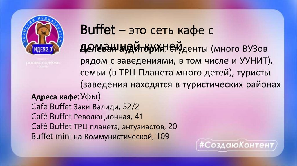 Buffet – это сеть кафе сдомашней