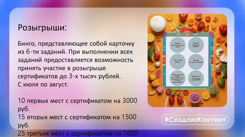 Бинго (призы) – 77500; (карточки) – 22000; (наклейки для