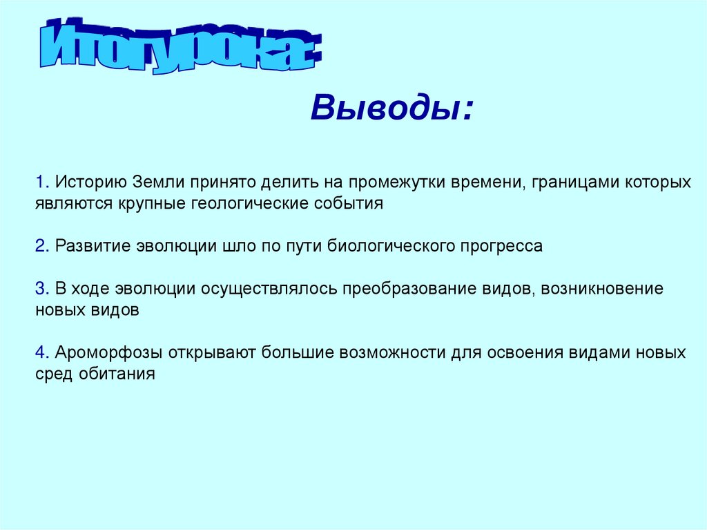 Выводы:1. Историю Земли принято делить на промежутки времени, границами которых