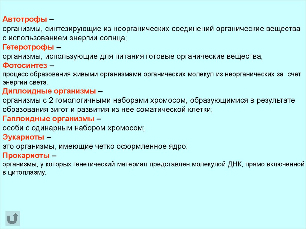 Автотрофы –организмы, синтезирующие из неорганических соединений органические вещества