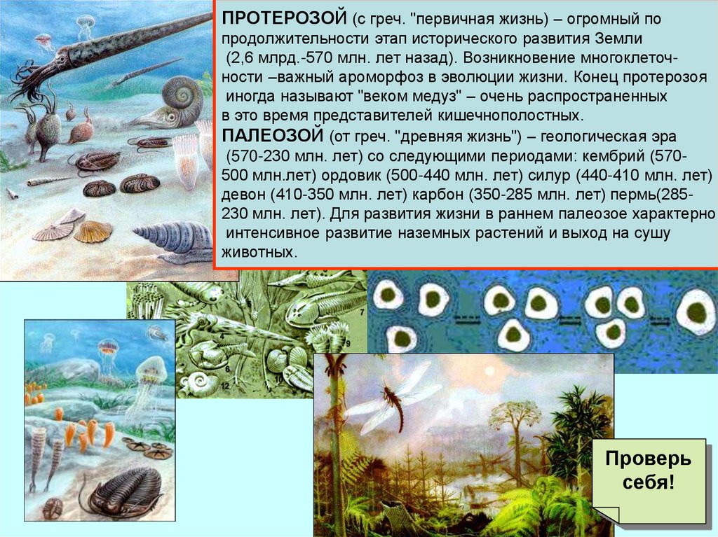 (2,6 млрд.-570 млн. лет назад). Возникновение многоклеточности –важный ароморфоз в эволюции жизни. Конец протерозоя