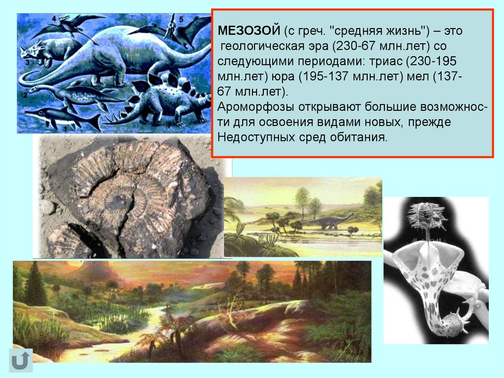 МЕЗОЗОЙ (с греч. "средняя жизнь") – этогеологическая эра (230-67 млн.лет) со