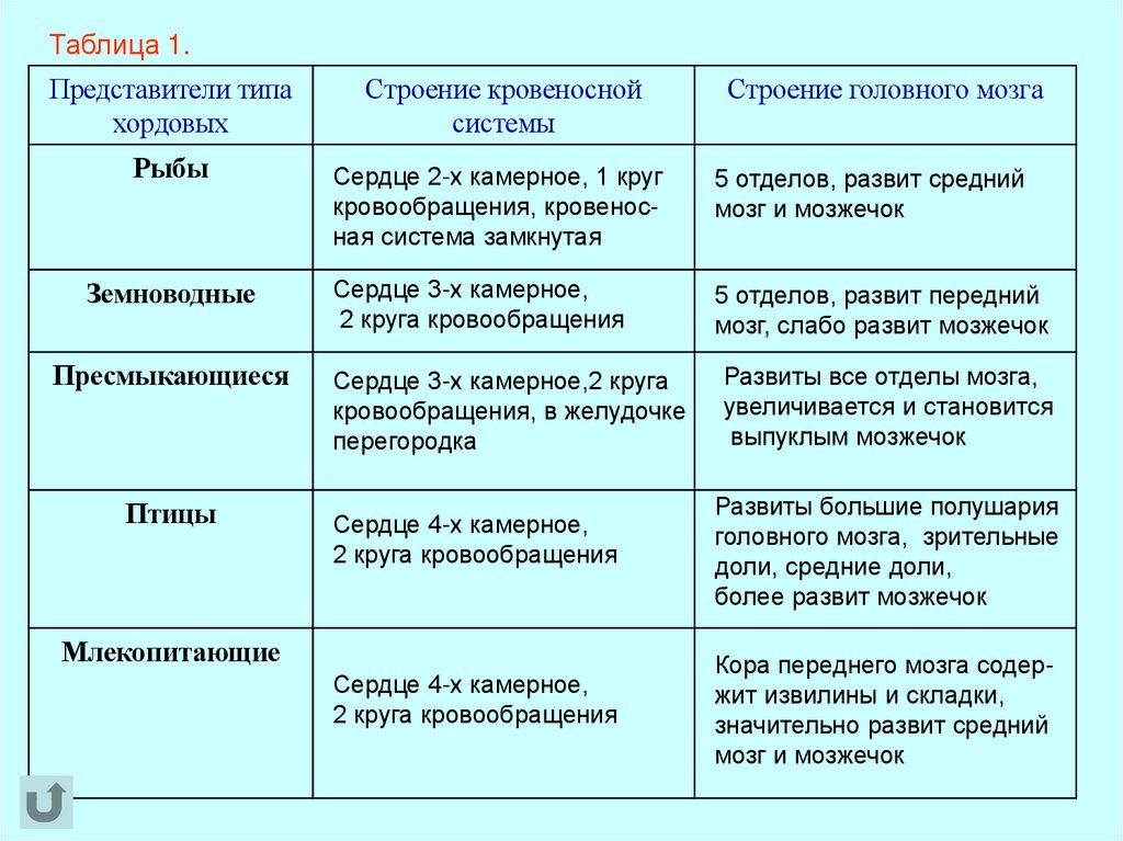 Таблица 1.Представители типа